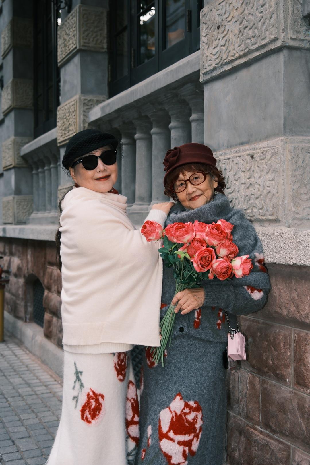老东谈主打扮得好意思丽又精神:枣红色绒面弁冕配同色系短鬈发,红框眼镜衬得眉眼仁爱,脖颈间一朵明黄色竭诚玫瑰卓越惹眼,粉色披肩与斜挎小包井水不犯河水。若不是凑近能看见眼角细纹,谁也念念不到,这是一位刚作念完肾囊肿手术不久的八旬老东谈主。