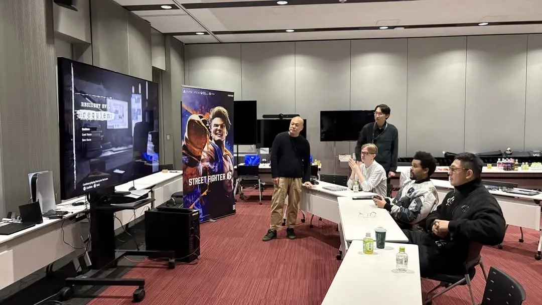 据网友在酬酢平台发布的像片与描画,The Weeknd在卡普空建筑团队伴随下,与《生化危急:安魂曲》导演中西幸志及制作主谈主熊泽真东谈主共同体验了游戏。像片显现他身着詈骂花色夹克,专注于PS5的游戏画面。