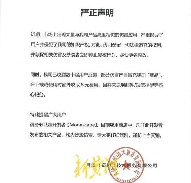 新黄河记者堤防到,这是“死了么”App鄙人架后,设备者首度就“仿品”一事发布声明。声明中还称,公司已收到数十升引户响应:部分仿冒居品冒充“新品”鄙人载或使用时非凡收取8元用度,幸运彩app且并未终了邮件/短信辅导等核实管事。