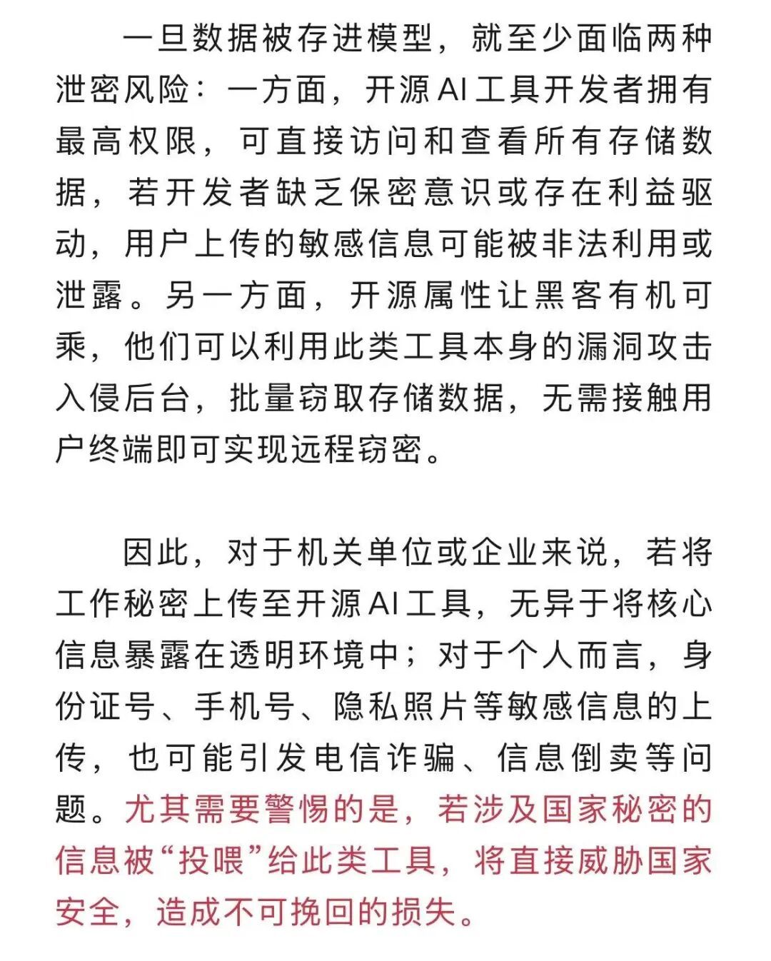 轻点鼠标就能生成决策、上传文献即可快速解决,方便高效的开源AI器具,幸运彩app官方最新版下载早已成为不少东谈主责任和生涯中的“过劲助手”。可你是否相识到,在你将里面贵寓、诡秘信息“投喂”给AI的那一刻,一场荫藏的泄密风险可能还是悄然莅临。