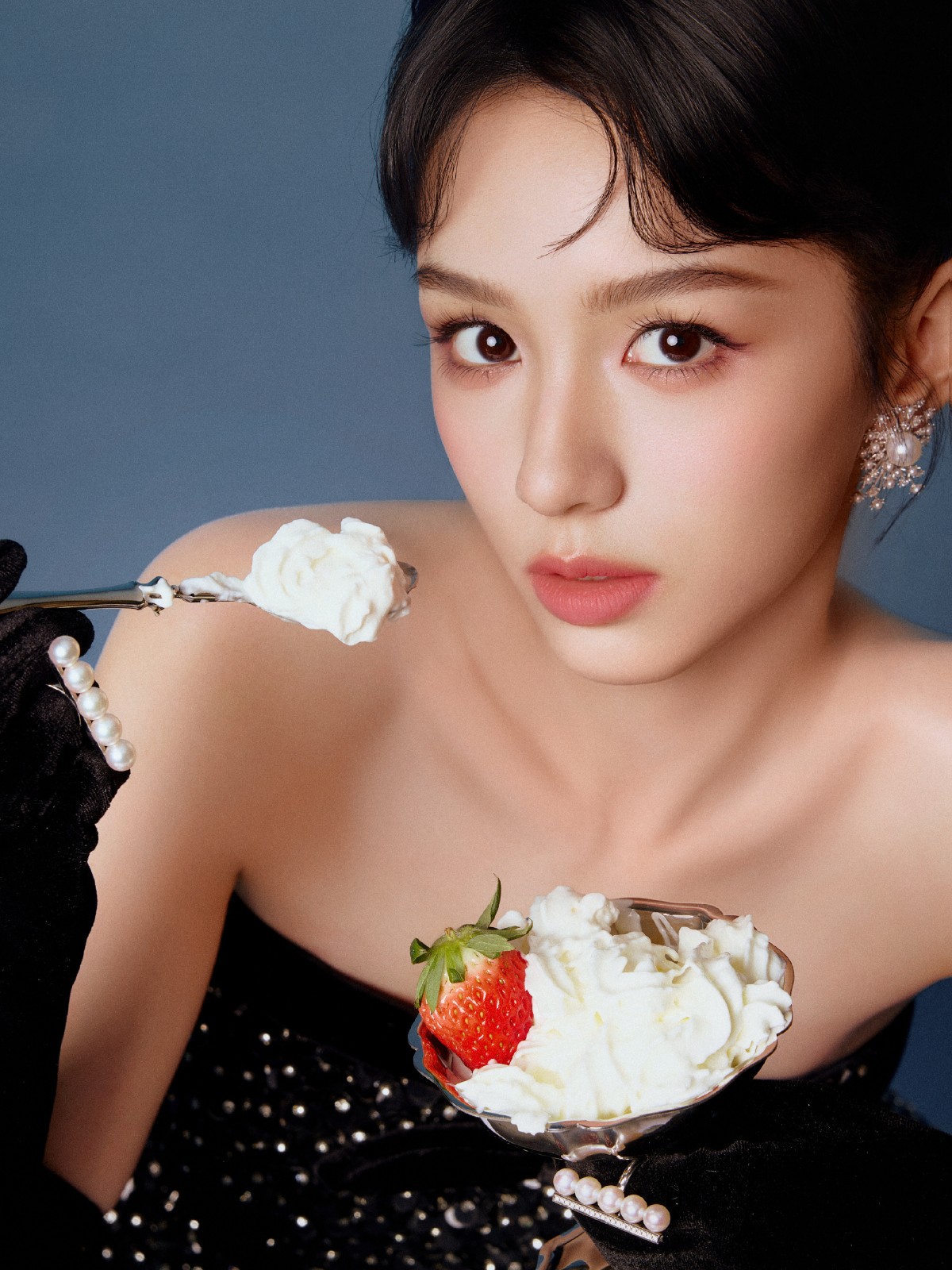 在高贵齐市的暮色中,周也宛如从旧时光里走出的优雅名媛,以一袭经典的抹胸黑裙惊艳亮相。裙身之上,缜密的亮片如夜空中的繁星般耀眼,在光泽的照耀下熠熠生辉,为合座造型增添了丽都感与梦境感。