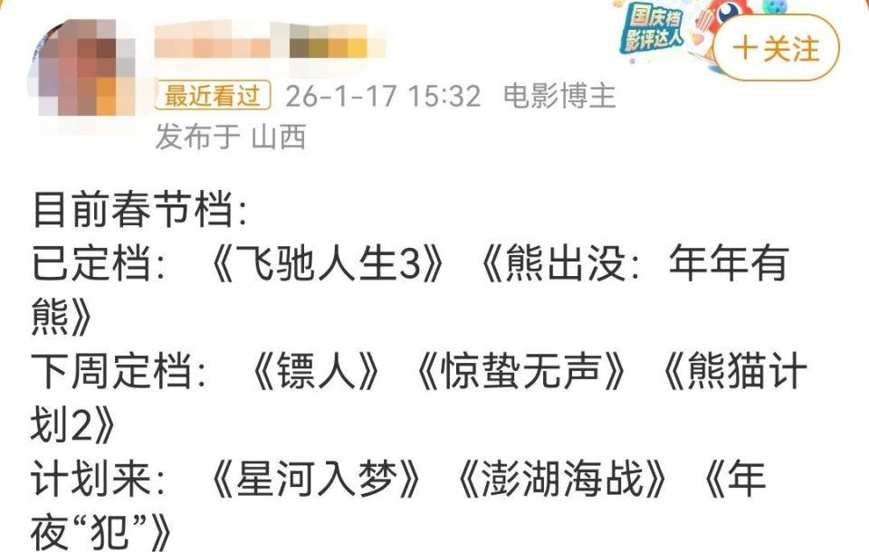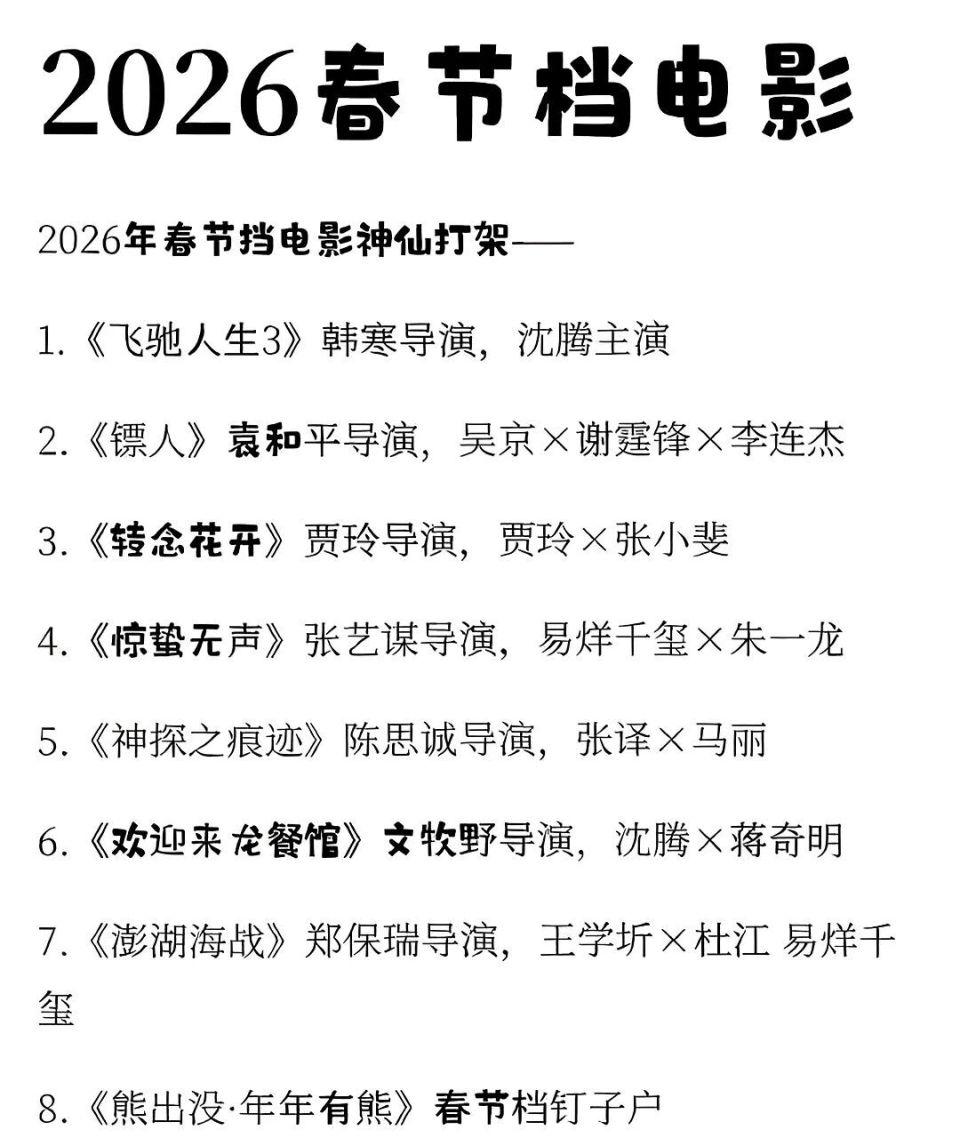 好在 2026 年春节有 9 天超长假期,为票房增长提供了弥长空间。跟着《惊蛰无声》等影片粗略率本周官宣,春节档口头很快会明晰起来。
