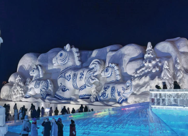 本报讯 (记者 闫 利 文/摄)跟着马年春节脚步附进,第二十七届哈尔滨冰雪大天下打造的一系列声威恢宏又创意总共的马元素冰雪景不雅群,将马元素与精炼的冰雪艺术深度和会,为搭客打造出一场视觉与文化交汇的冬日盛宴。